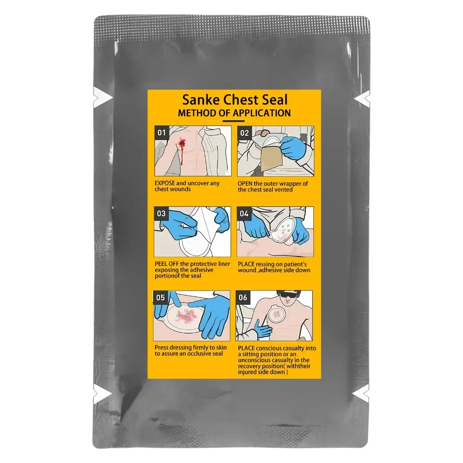 De Sanke Rescue noodkit bevat de meest populaire overlevingsaccessoires: tourniquet, borstverband, compressiegaas, overlevingsarmband, fluitje, nooddeken, een uitgebreide EHBO-set, enz.