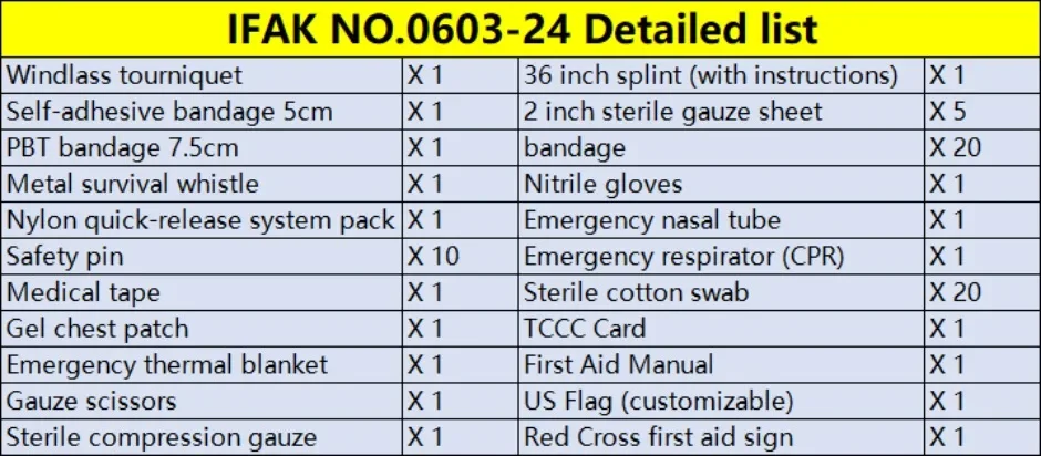 IFAK NR. 0603-24 Gedetailleerde lijst