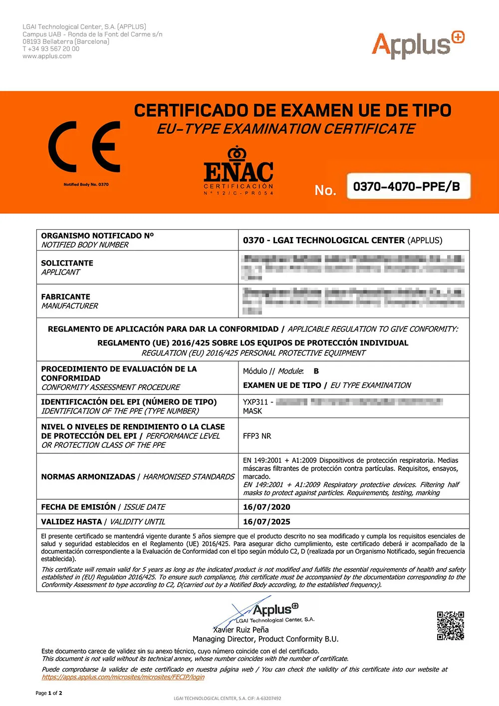 2. With manufacturer information and certificate of conformity, the content includes the date of production;